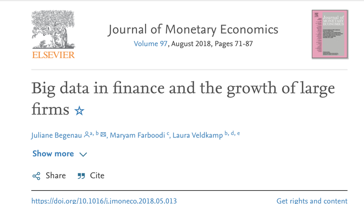Big data in finance and the growth of large firmsLast updated on Nov 16, 2020Go to Project Sitesession11 theory reading readings11theoryDr. Ryan RiordanAssociate Professor & Distinguished Professor of FinanceRelatedLaura Veldkamp on Modeling and Measuring the Data EconomyLong Run Growth of Financial Data TechnologyBig Data in FinanceWhy finance is deploying natural language processingDoes a Central Clearing Counterparty Reduce Counterparty Risk?